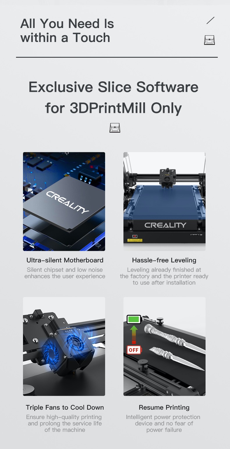 - Specially designed slicer software CrealityBelt.