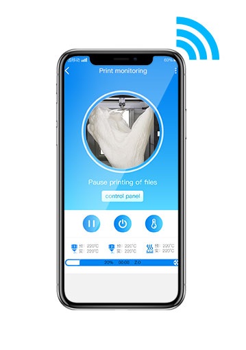 Технология управления видео камерой позволяет клиентам удаленно контролировать процесс 3д печати по скорости, паузе, температуре и т. д. С помощью приложения, что позволяет добиться наилучшего качества печати в кратчайшие сроки без сбоев. Очень полезная функция для больших моделей и долгой печати.