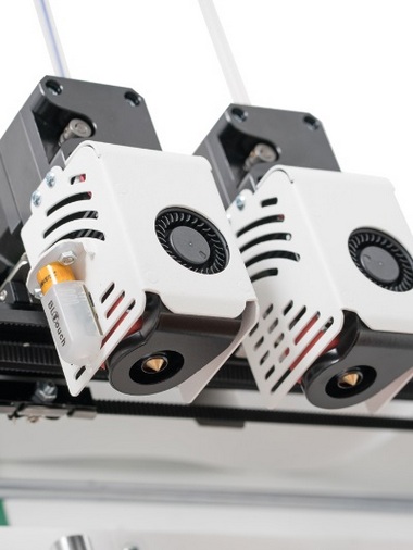 Система з двох незалежних екструдерів IDEX (Independent Dual Extruder) означає, що ви маєте одразу два екструдери, які рухаються та друкують незалежно один від одного. Отже, ваші можливості багатократно помножуються: друк двома матеріалами одночасно, одночасний друк двох дзеркальних частин чи паралельний друк однакових частин - стають реальністю.